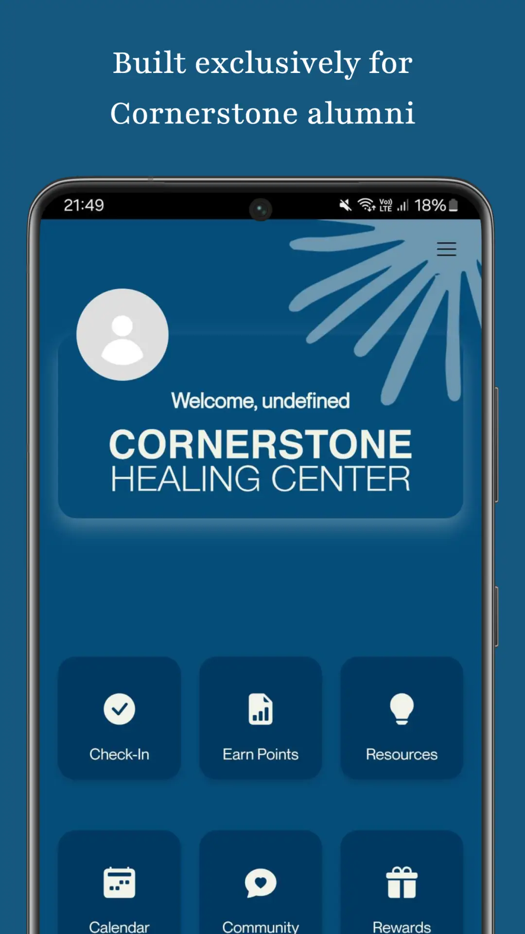 The Cornerstone Healing Center Alumni App is designed exclusively for alumni of Cornerstone Healing Center to foster community, accountability, and growth.
